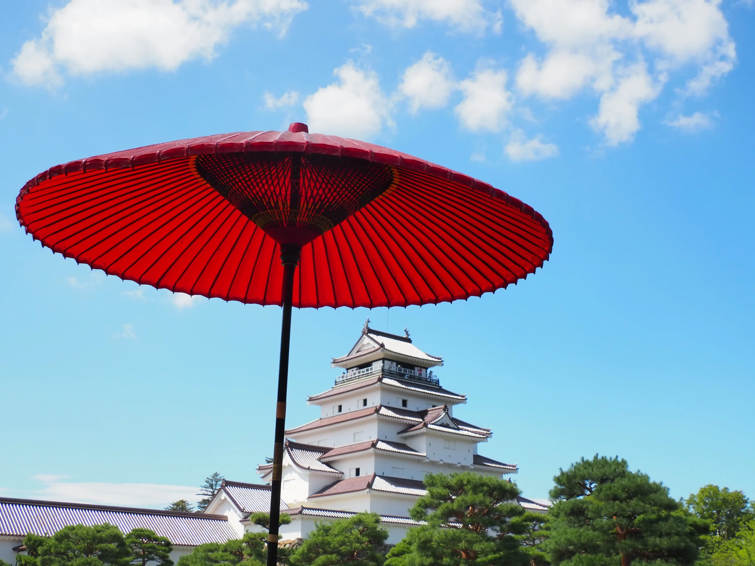 鶴ヶ城は、1593年に氏郷殿によって建てられた東北初の天守をもつ総石垣の城である。