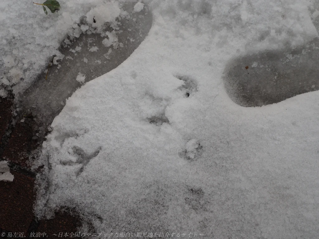 雪に鳥の足跡がついている。足冷たくないのかな?